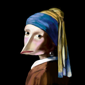 暇だったから、真珠の耳飾りの少女をモチーフにアマビエを描いてみました♫