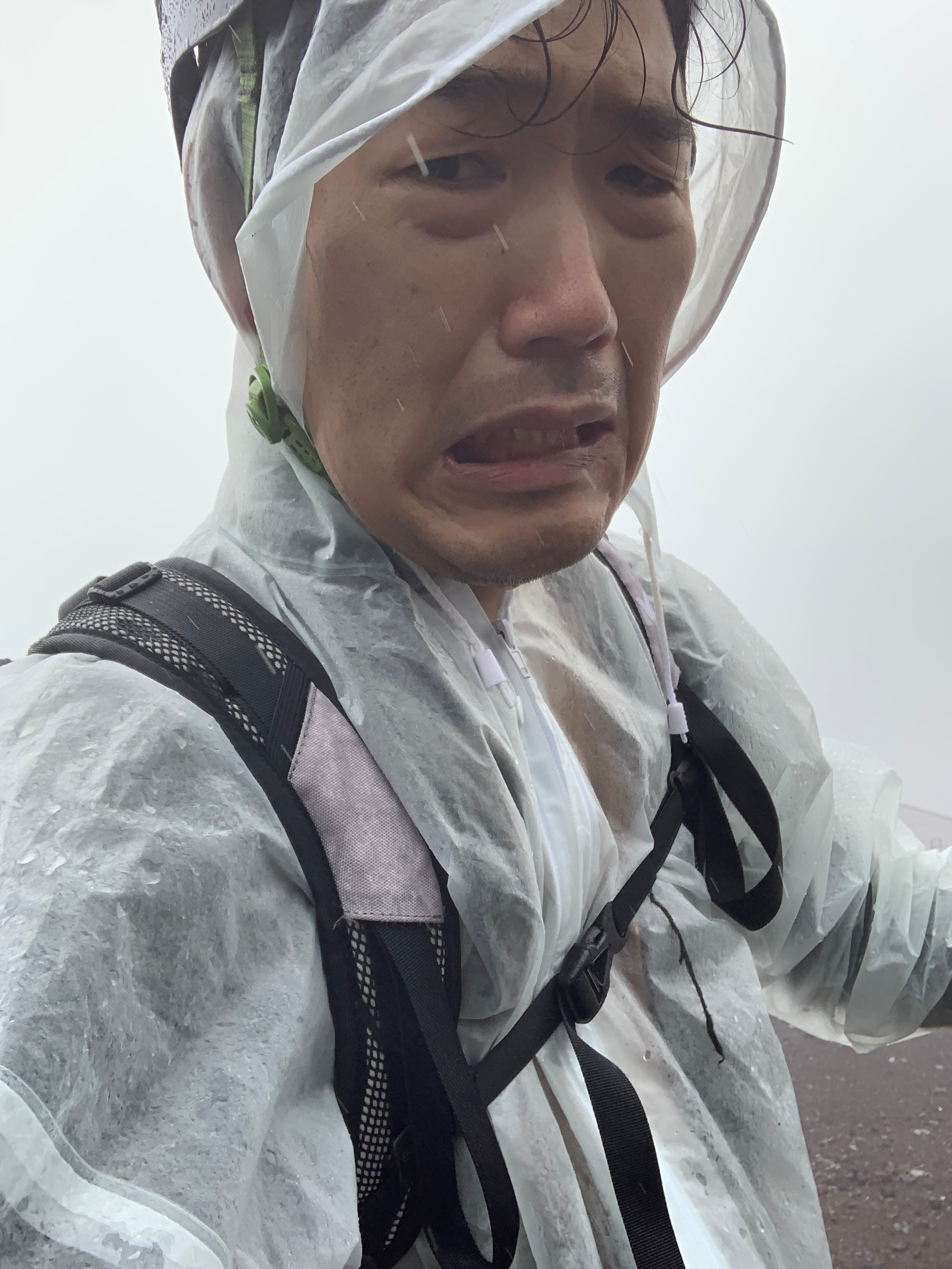 薄暗くてよくわかんないけど、あれが山頂? 4:30