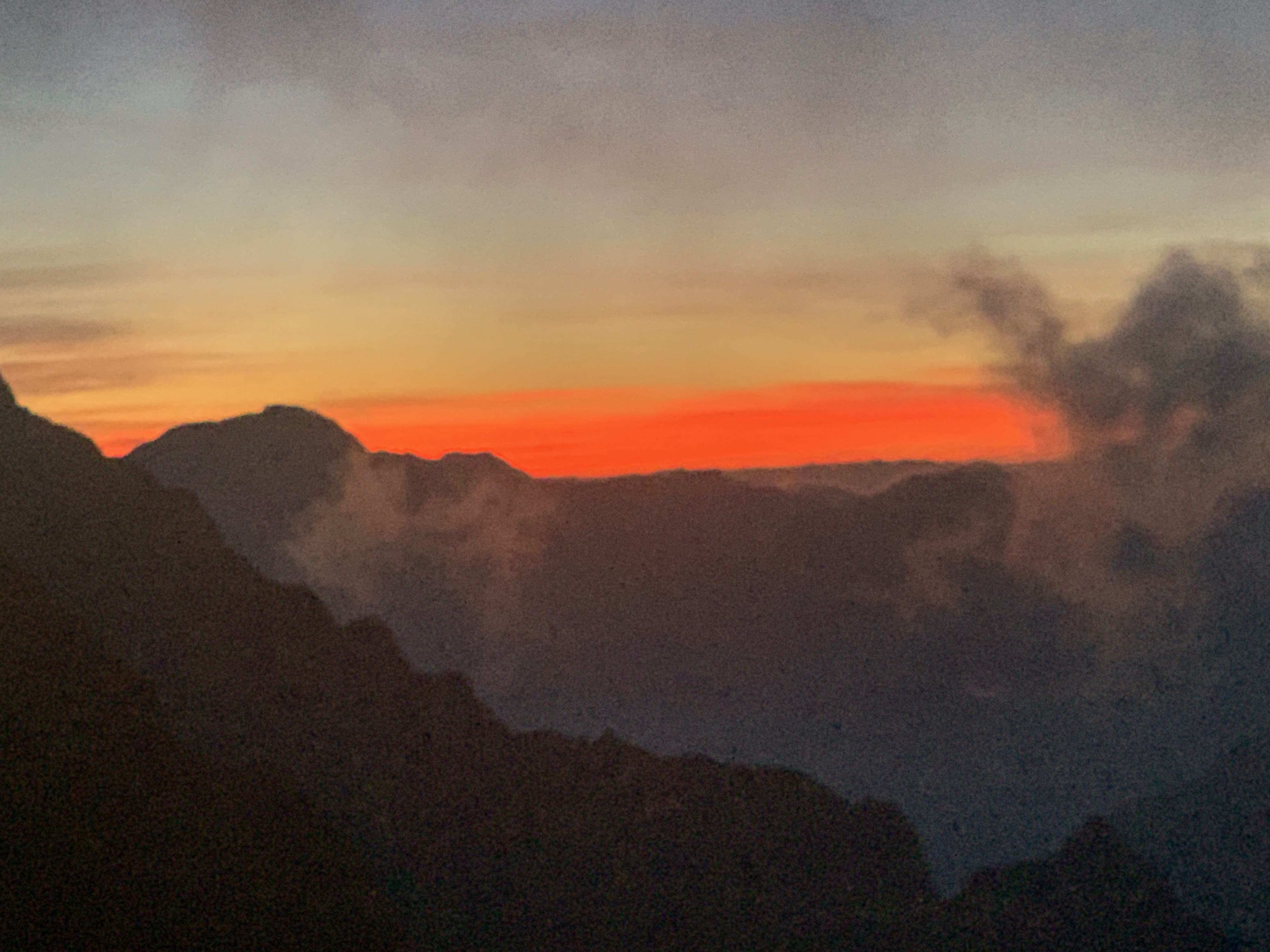 明るくなって、振り返ると、昨日歩いた山々